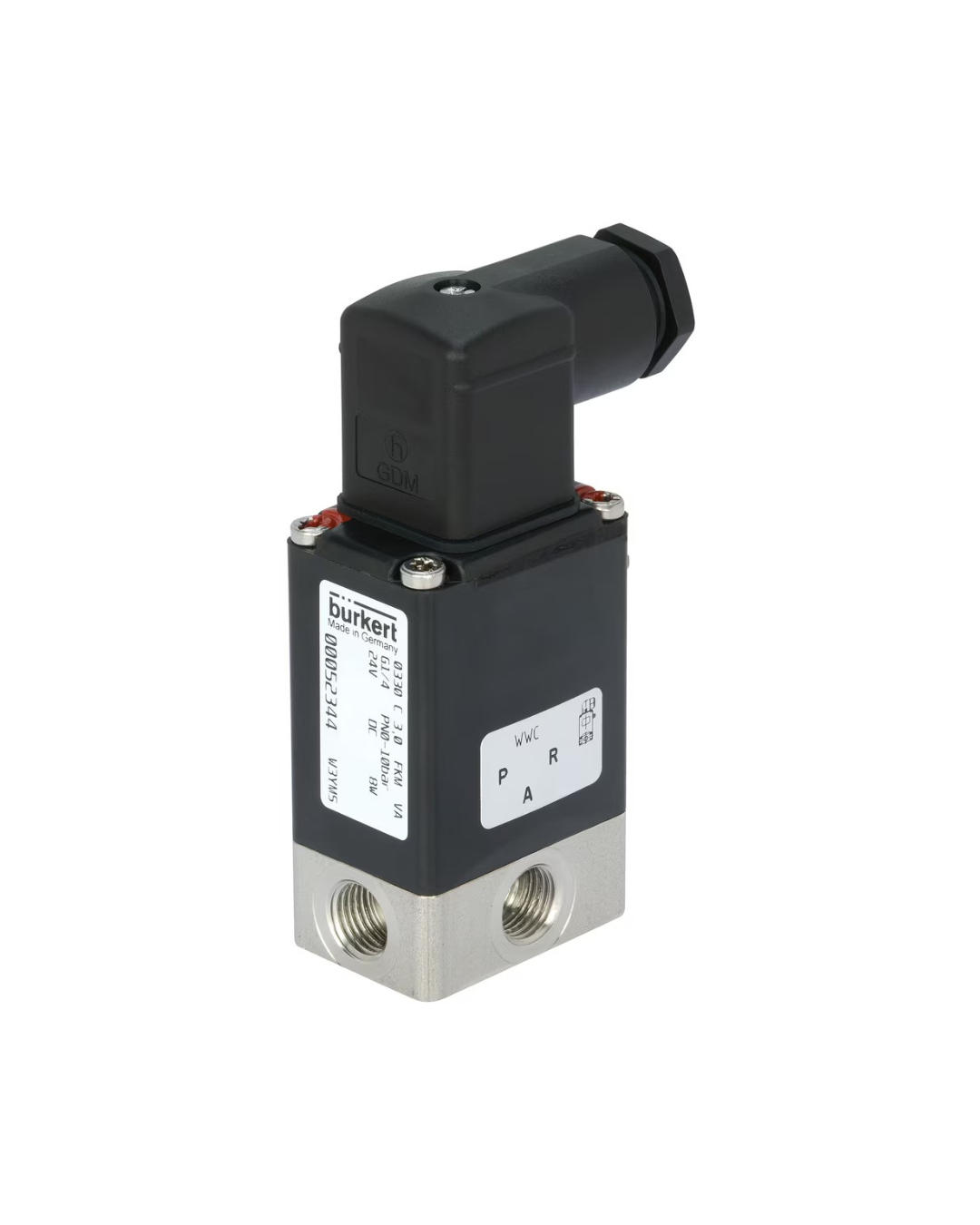 La válvula 0330 es una válvula de clapeta oscilante de efecto directo con separación de fluidos. Está disponible en versiones de 3/2 y de 2/2 vías. Como versión de 3/2 vías puede emplearse como válvula distribuidora o válvula mezcladora. Dependiendo de la aplicación, están disponibles diferentes materiales de membrana y modos de acción. La oferta de cuerpos de válvula incluye latón, acero inoxidable, PEEK y polipropileno. Las bobinas magnéticas están encapsuladas con epoxi de alta resistencia química. Puesto que el sistema de bobinas está aislado del medio por una membrana, esta válvula es especialmente idónea para fluidos críticos como ácidos y bases agresivos. Para la puesta en marcha y la comprobación, la válvula 0330 está equipada con un accionamiento manual. Para la reducción del consumo energético se pueden suministrar todas las bobinas con una reducción de potencia electrónica o como versión de impulsos. El estado de conmutación puede aparecer como señal binaria o NAMUR a través de una retroalimentación de posición.