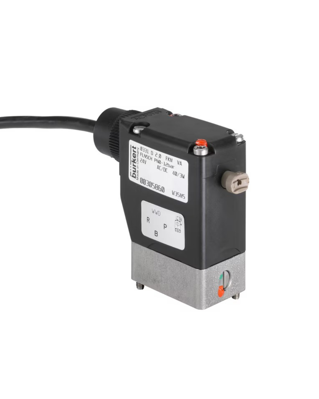La válvula 0331 es una válvula de clapeta oscilante de efecto directo con separación de fluidos. Está disponible en versiones de 3/2 y de 2/2 vías. Como versión de 3/2 vías puede emplearse como válvula distribuidora o válvula mezcladora. Dependiendo de la aplicación, están disponibles diferentes materiales de membrana y modos de acción. La oferta de cuerpos se completa con acero inoxidable (316L), PEEK y polipropileno. Las bobinas magnéticas están encapsuladas con epoxi de alta resistencia química. Puesto que el sistema de bobinas está aislado del fluido por una membrana, esta válvula es especialmente idónea para fluidos críticos como ácidos y bases agresivos. Para la puesta en marcha y la comprobación, la válvula 0331 está equipada con un accionamiento manual. Para la reducción del consumo energético se pueden suministrar todas las bobinas con una reducción de potencia electrónica o como versión de impulsos. El estado de conmutación puede aparecer como señal binaria o NAMUR mediante un indicador de posición.