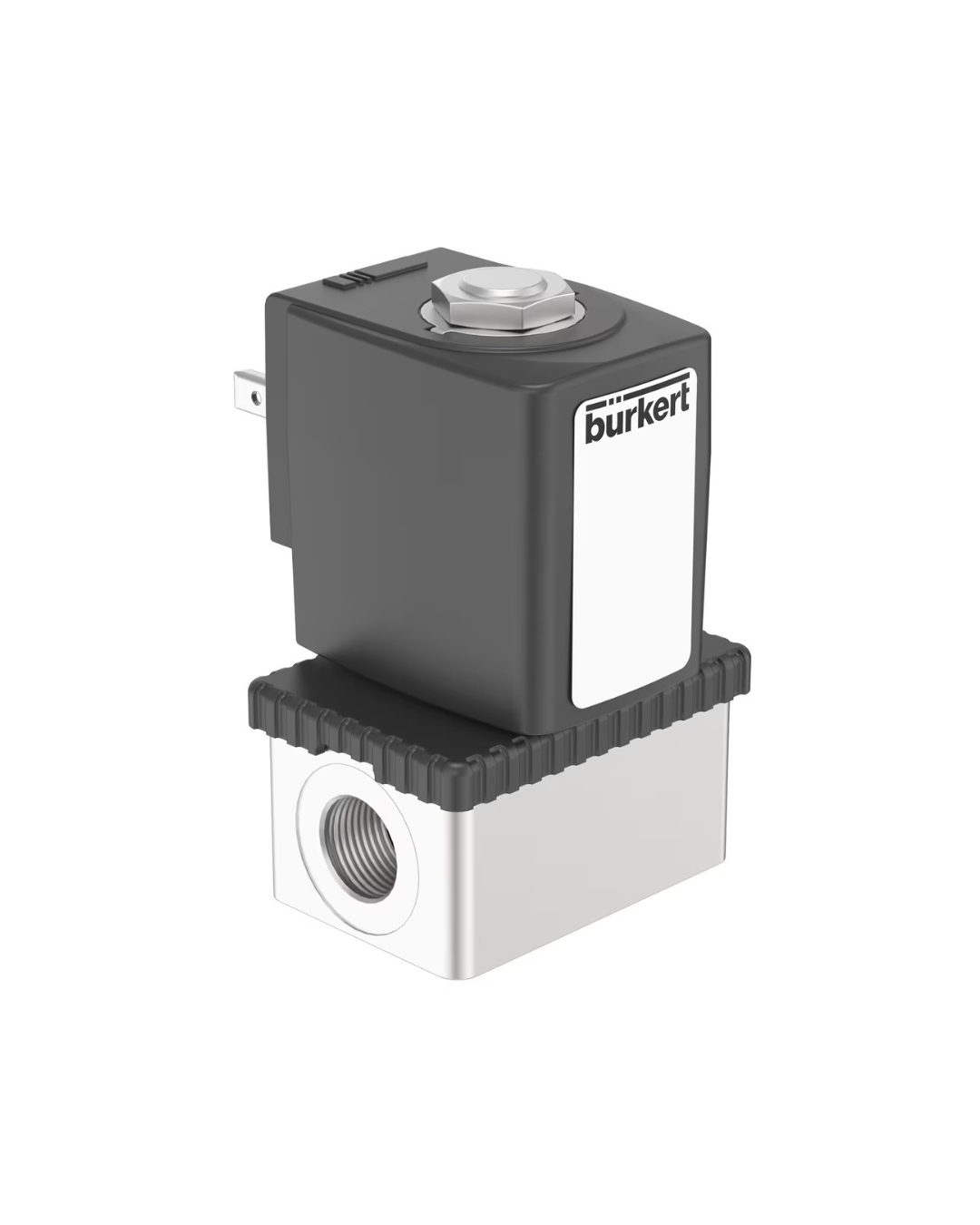 La válvula 6013 es una válvula tipo émbolo de acción directa. Para aumentar la seguridad de presión y de fuga, los tapones y el tubo guía de núcleo están soldados entre sí. Según la aplicación se dispone de diferentes combinaciones de material sellador. Un modelo de brida (SFB) específico de Bürkert permite la alineación de válvulas en poco espacio en una placa de conexión múltiple. Las bobinas están recubiertas por presión con poliamida o con epoxi químico altamente resistente. Para la reducción del consumo de potencia eléctrico durante el funcionamiento están disponibles bobinas de impulso así como un sistema electrónico «Kick and Drop» para la sobreexitación (conector 2511). Un accionamiento manual opcional permite una puesta en servicio rápida y un mantenimiento sencillo. En combinación con un conector DIN EN 17301-803, forma A, las válvulas cumplen el tipo de protección IP65. Las válvulas en diseño de acero inoxidable cumplen con NEMA 4X.