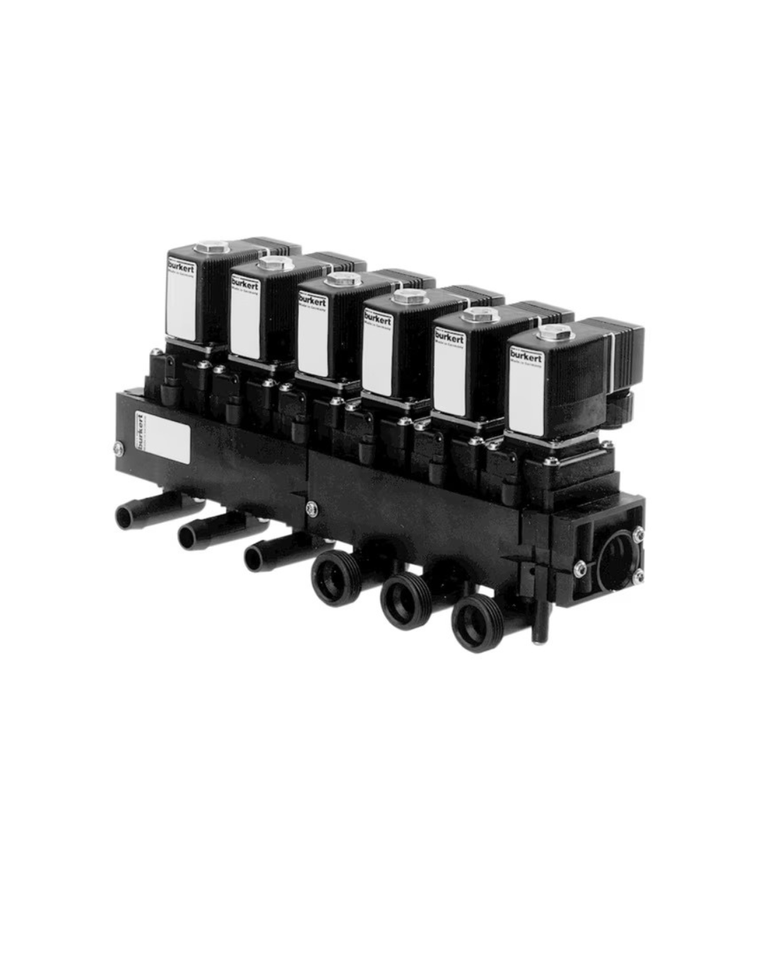 La electroválvula servopilotada con servomembrana está cerrada sin corriente. En este estado se genera una presión sobre la membrana que mantiene la válvula cerrada. Al conectar, la cámara situada sobre la servomembrana descarga la presión, es elevada por la presión del fluido y la válvula se abre. El sistema de válvulas modular conectado en serie puede efectuarse con cualquier tipo de combinación como distribuidor o colector en dos diámetros nominales distintos con diferentes variantes de conexión y hasta 12 válvulas. La función de las válvulas puede cambiarse fácilmente de la función colectora a la distribuidora (o viceversa) con solo girar la unidad de válvula. Todos los puestos de válvula pueden dotarse de módulos de ampliación en lugar de válvulas (p. ej., con sensores de temperatura).