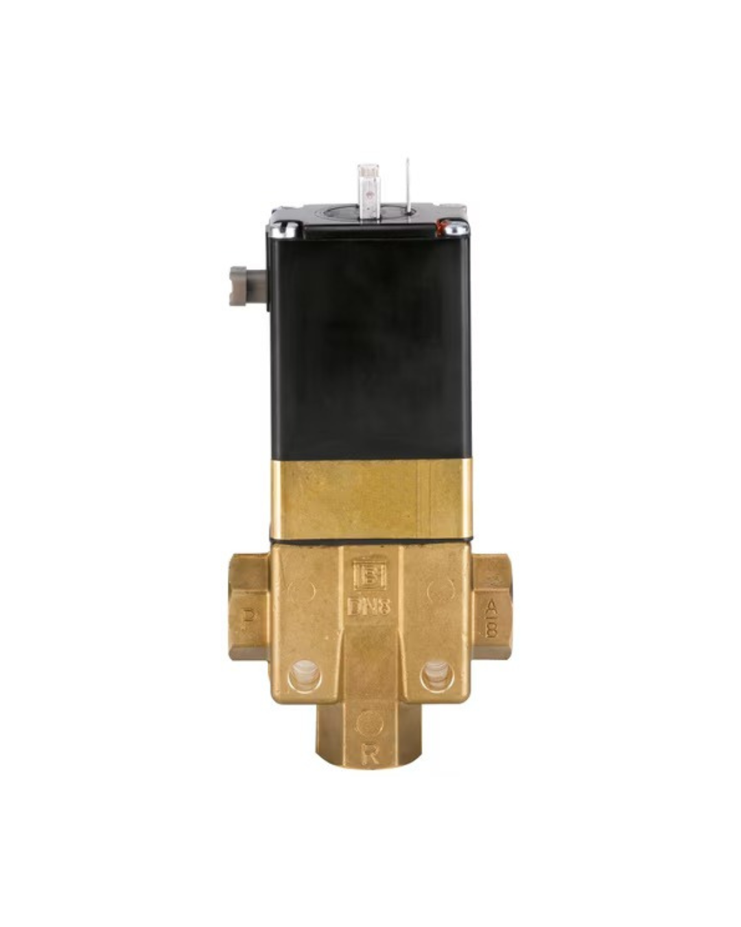 La válvula 6430 es una válvula de pistón de 3/2 vías servocontrolada. Puesto que la válvula no recibe suministro de aire auxiliar de control, se necesita una diferencia de presión mínima para su funcionamiento. Versiones: – Para líquidos y gases neutros dentro del rango de presiones 1-16 bar con funcionamiento NC y NO. – Para vacío técnico hasta 3 bar con funcionamiento NC y NO. – Con aire auxiliar de control para vacío hasta 8 bar con funcionamiento NC y NO. Todas las versiones disponibles como impulso están cerradas para garantizar el correspondiente estado de conmutación incluso en caso de interrupción de la tensión. Para su puesta en marcha o para que funcionen en modo manual, el modelo 6430 está equipado con un accionamiento manual (excepción: la versión por impulsos). Para reducir el consumo de energía eléctrica durante el funcionamiento se dispone de bobinas con electrónica «Kick and Drop» (KD) integrada en tecnología de doble bobina. Como válvula de pilotaje se emplea la válvula de 3/2 vías de clapeta oscilante modelo 0331, que no necesita mantenimiento. En combinación con un obturador según la norma DIN EN 175301– 803 Forma A, las válvulas cumplen la clase de protección IP65.