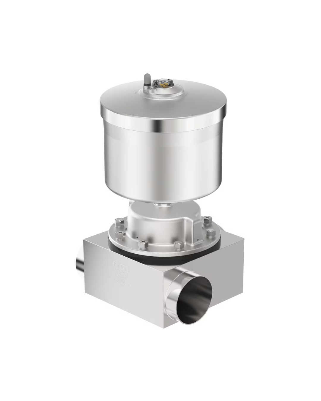 La válvula de membrana con control externo modelo 2104 se compone de un actuador de émbolo de accionamiento neumático, una membrana y un cuerpo de válvula en T. El actuador de alta calidad con cuerpo de acero inoxidable garantiza su uso bajo condiciones ambientales higiénicas o agresivas. El cuerpo de válvula sin espacios muertos y que facilita el flujo permite obtener altos valores de caudal y se puede utilizar en múltiples ámbitos. El cuerpo de válvula y la membrana están disponibles en los materiales y versiones más habituales. El actuador tiene un diseño compacto que puede esterilizarse en autoclave con una funda de acero inoxidable de gran superficie y juntas sin holguras. La integración de las unidades de automatización del modelo ELEMENT se puede realizar en cualquiera de sus fases de ampliación (reequipable), y puede equiparse con una interfaz de bus de campo integrada. Está disponible una versión con protección frente a explosiones ATEX/IECE. Se trata de un sistema compacto, liso y altamente integrado compuesto por válvula y unidad de automatización con canales de aire de control integrados (no hay succión del aire ambiental). El cuerpo está opcionalmente disponible en plástico o acero inoxidable (puede girar 360°). La válvula cuenta con una clase de protección IP65/67 y NEMA tipo 4X, y tiene una gran resistencia química.