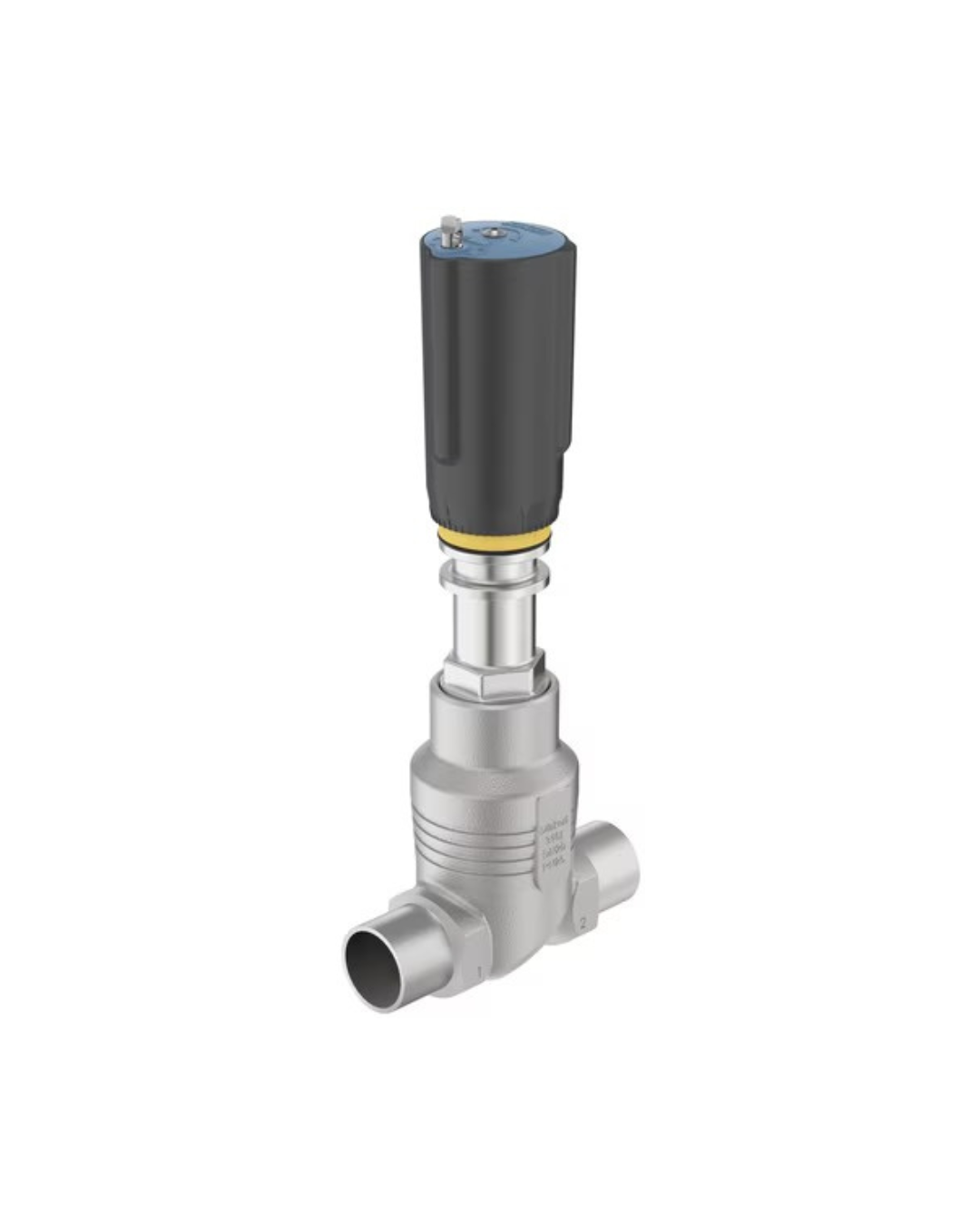 La válvula de asiento recto Tipo 2921 consta de un actuador manual y un cuerpo de válvula de 2 vías de acero inoxidable. Con un cuerpo de válvula de alta calidad, esta válvula de accionamiento manual ofrece diferentes posibilidades de uso relacionadas con el bloqueo de líquidos y gases tanto neutros como agresivos. Su apreciada junta de protección de husillo autoajustable garantiza una estanqueidad óptima, permitiendo así un funcionamiento sin apenas mantenimiento incluso con numerosos ciclos de conmutación. En función la aplicación, la junta blanda de PEEK garantizará una estanqueidad del asiento óptima incluso bajo condiciones de funcionamiento exigentes. El actuador está fabricado con plástico de alta calidad, y es adecuado para uso en entornos exigentes. Dispone de un indicador óptico de posición, y se puede equipar opcionalmente con un limitador de carrera y un dispositivo de bloqueo.