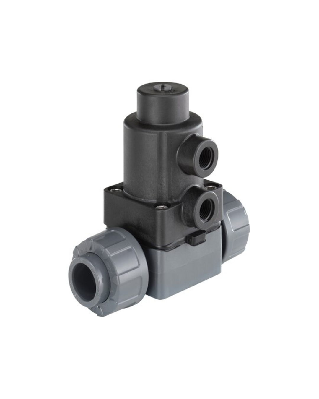 Válvula de membrana de 2/2 vías sintética con control externo con accionamiento neumático y reposición por muelle. Uso con fluidos contaminados en la tecnología de proceso y de tratamiento de aguas.
