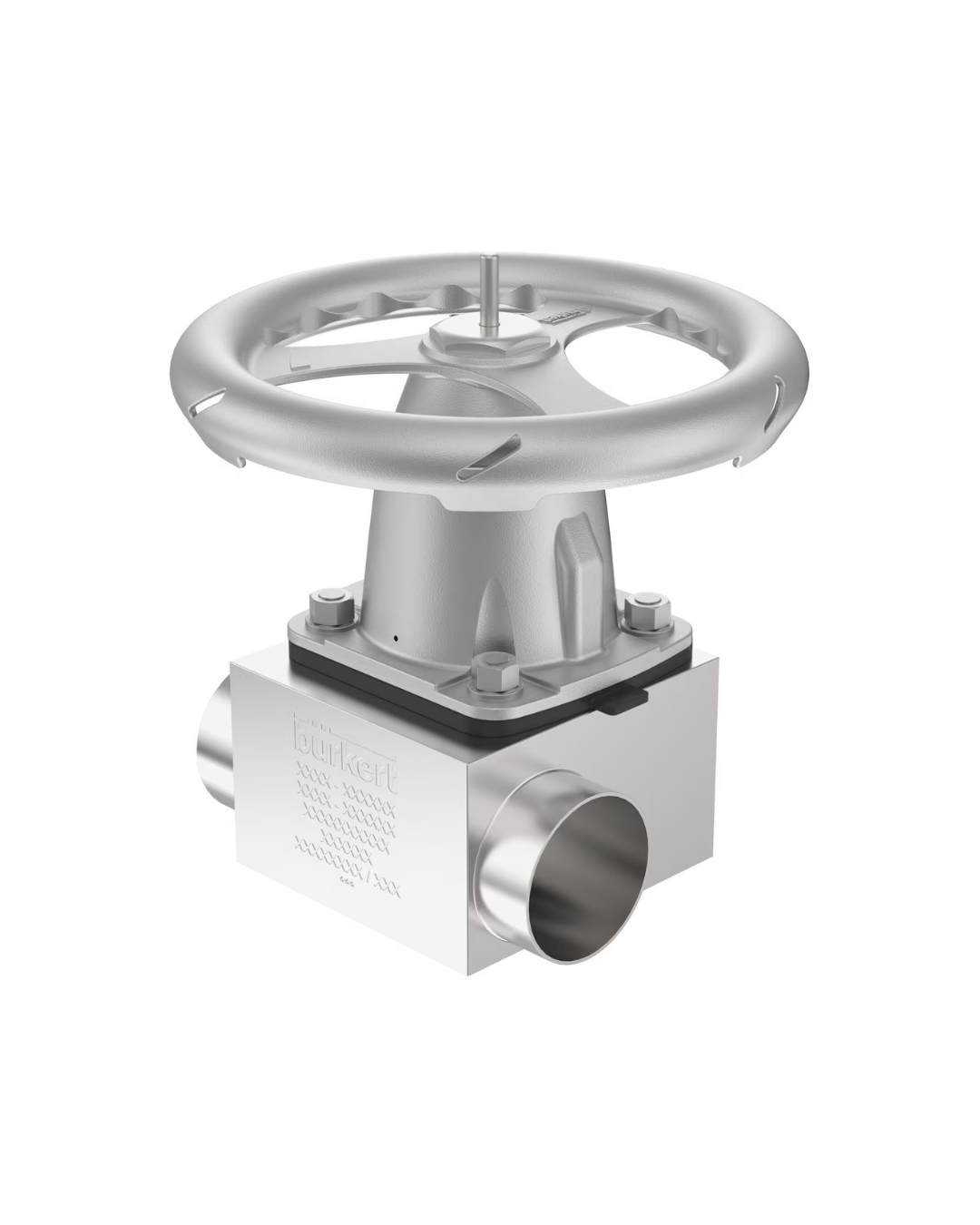 La válvula de membrana con accionamiento manual modelo 3234 se compone de un actuador de accionamiento manual, una membrana y un cuerpo de válvula en T. El actuador de alta calidad con volante de plástico o acero inoxidable a elección, garantiza su uso bajo condiciones ambientales higiénicas o agresivas. El cuerpo de válvula sin espacios muertos y que facilita el flujo permite obtener altos valores de caudal y se puede utilizar en múltiples ámbitos. El cuerpo de válvula y la membrana están disponibles en los materiales y versiones más habituales. El actuador tiene un diseño compacto que puede esterilizarse en autoclave y es compatible con otras válvulas de membrana de Bürkert. Está disponible una versión con protección frente a explosiones ATEX/IECE. El cuerpo de válvula y el volante están disponibles a elección en plástico o acero inoxidable, y están equipados con un indicador de posición óptico integrado. El actuador manual puede equiparse opcionalmente con un limitador de carrera, sensores indicadores de la posición y una función de apagado.