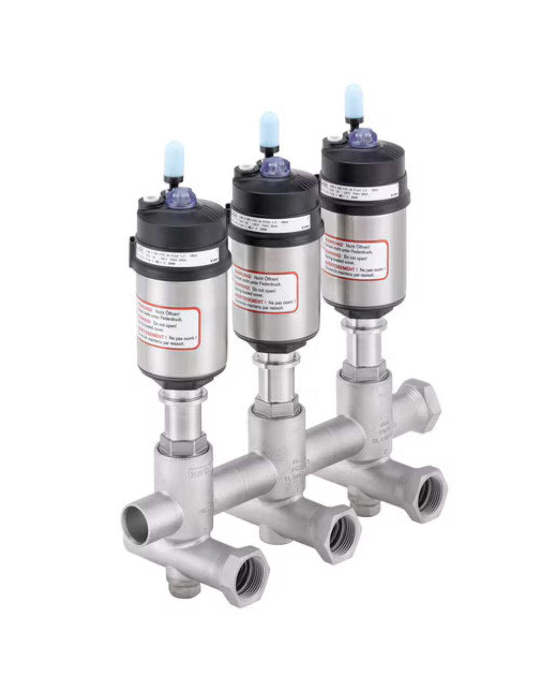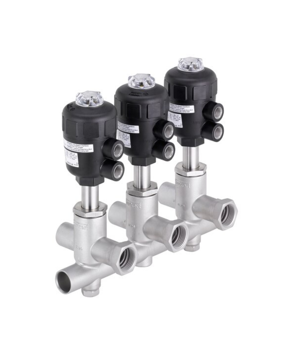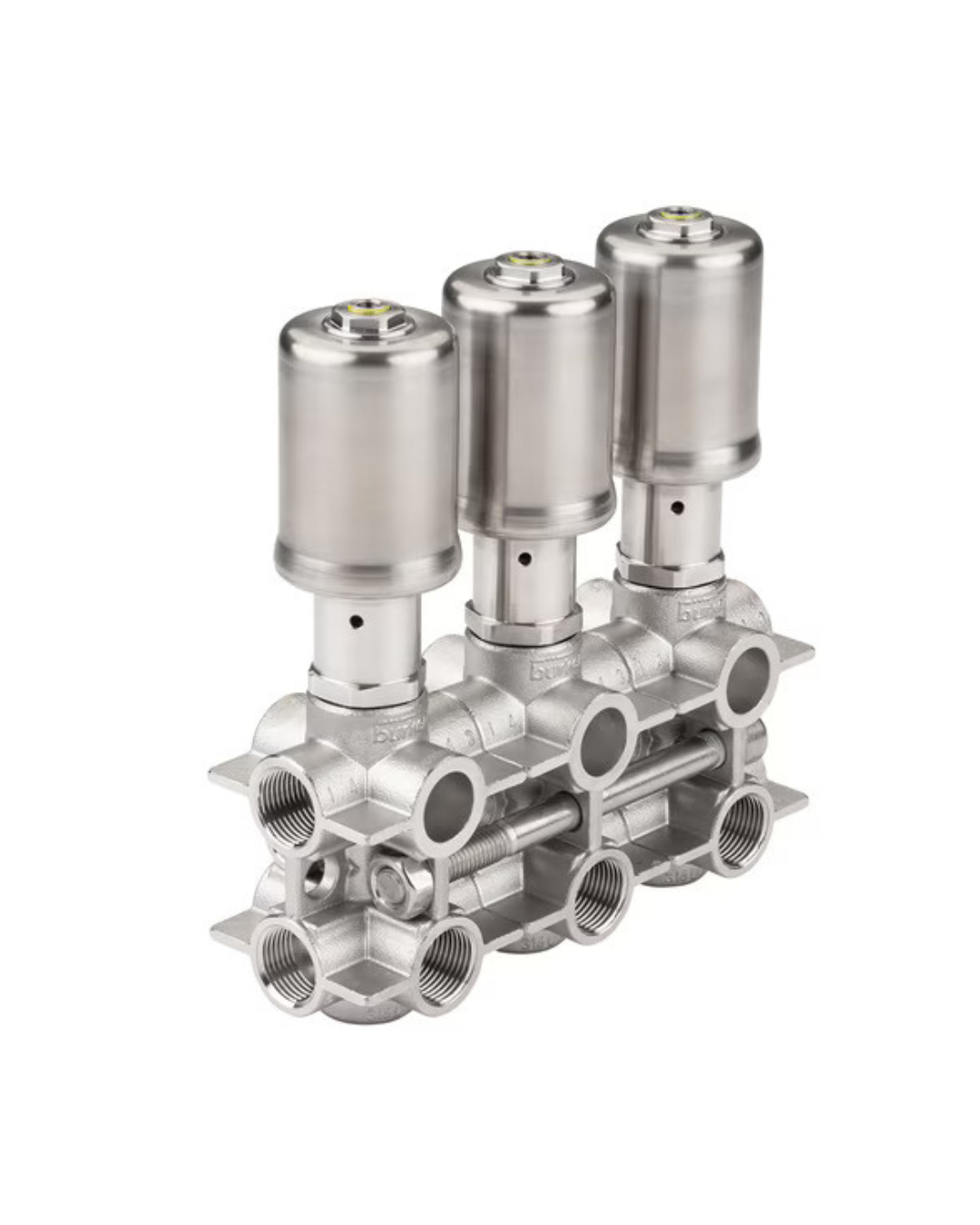 Junto con el modelo 8840 se proporcionan conjuntos de válvulas completos, listos para instalar y con la probada eficacia de las válvulas de proceso Bürkert. Los grupos de válvulas, basados en un sistema de carcasa modular, constituyen una estructura universal, son estancos y muy compactos. No es necesario dedicar tiempo a instalar tuberías o elementos de conexión. Los tamaños DN20 y 25 están disponibles en versión con soldadura orbital. Los grupos de válvulas en tamaño DN10 se roscan entre sí y van sellados con juntas de grafito de calidad probada. Con el fin de evitar peligrosos golpes de presión en los fluidos, todos los grupos de válvulas llevan la dirección del flujo debajo del asiento. Cada elemento cuenta con variantes de las funciones fluídicas básicas (distribuidor y colector, o bien mezcla o alimentación). Dependiendo de las exigencias y del tipo de automatización que se prefiera, es posible elegir diferentes variantes de accionamiento. Los robustos accionamientos CLASSIC (en acero inoxidable o plástico) se controlan de manera centralizada por medio de una isla de válvulas o bien de una válvula servopilotada. Los accionamientos ELEMENT, de probada eficacia, permiten implementar una sencilla automatización descentralizada utilizando cabezales de control inteligentes. Además, se puede ampliar el sistema utilizando válvulas reguladoras, sensores, tuberías a la medida del cliente y otros accesorios.
