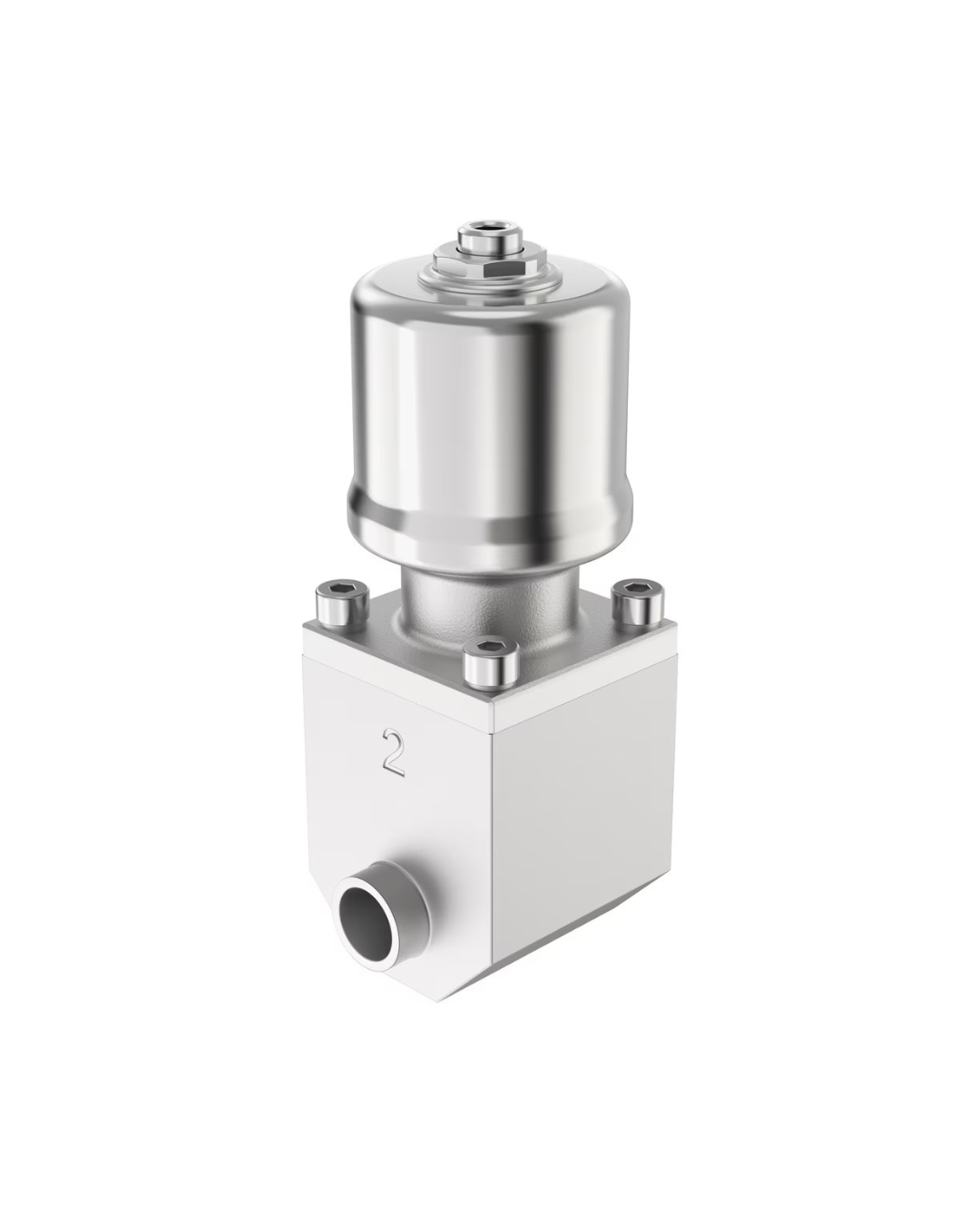 La válvula consta de un actuador de pistón de accionamiento neumático, un cuerpo de acero inoxidable y un fuelle de PFTE. El fuelle de PTFE sirve para aislarla del fluido. Los materiales empleados y el contorno interno se limpian fácilmente (CIP y SIP). La válvula es apta para uso con productos alimentarios. Su diseño modular permite equiparla con diferentes accesorios y conexiones de tubería específicas del cliente. El actuador neumático se puede ampliar con diferentes funciones y se puede controlar externamente a través de una válvula de pilotaje o de una isla de válvulas.
