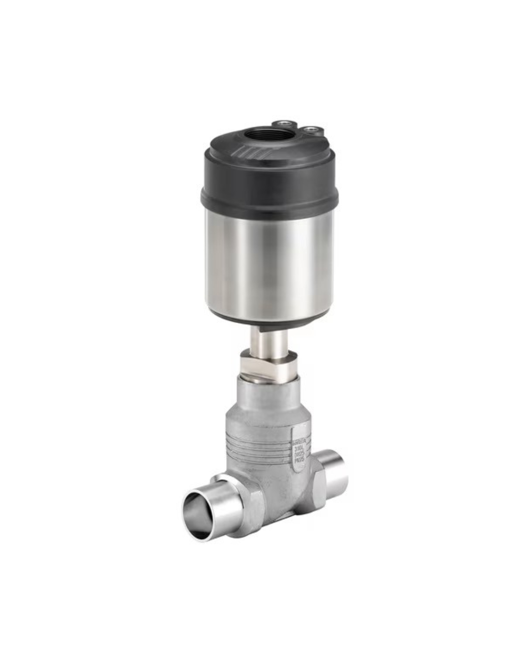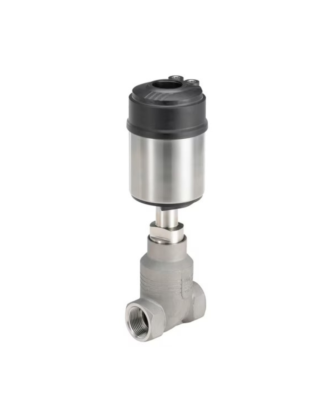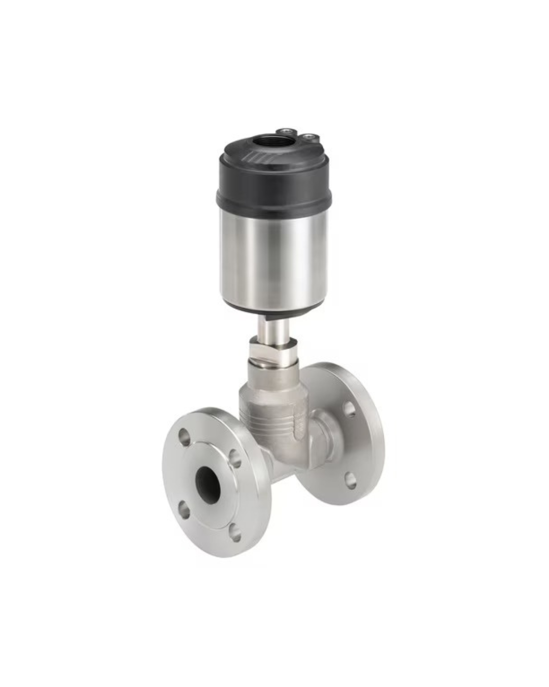 Conforme a la filosofía de Bürkert, el diseño de la válvula reguladora de asiento recto de tipo 2301 cumple todos los requisitos relevantes de la práctica incluso bajo condiciones de uso difíciles. La vida útil y la estanqueidad quedan garantizadas al máximo mediante la obturación del husillo autorreajustable, de eficacia probada y con empaquetaduras angulares intercambiables. Cada cuerpo de válvula de asiento recto se puede equipar con hasta 5 tamaños diferentes de asiento de válvula. Estas combinaciones de asiento de válvula de cono parabólico proporcionan una curva característica fiable y repetible para la modificación del paso de flujo. Los conos de regulación se suministran bien en acero fino, bien con una junta PTFE permanente o bien en PEEK para el cierre hermético según la clase de fugas III, IV o VI. El diseño de accionamiento permite la integración sencilla de unidades de automatización en todos los niveles de montaje, desde el regulador de posición electroneumático hasta al regulador de proceso. El sistema altamente integrado de válvula y unidades de automatización destaca por su compacidad y su superficie lisa en el diseño, canales de aire de control integrados, clase de protección IP65/67 y una alta resistencia química.