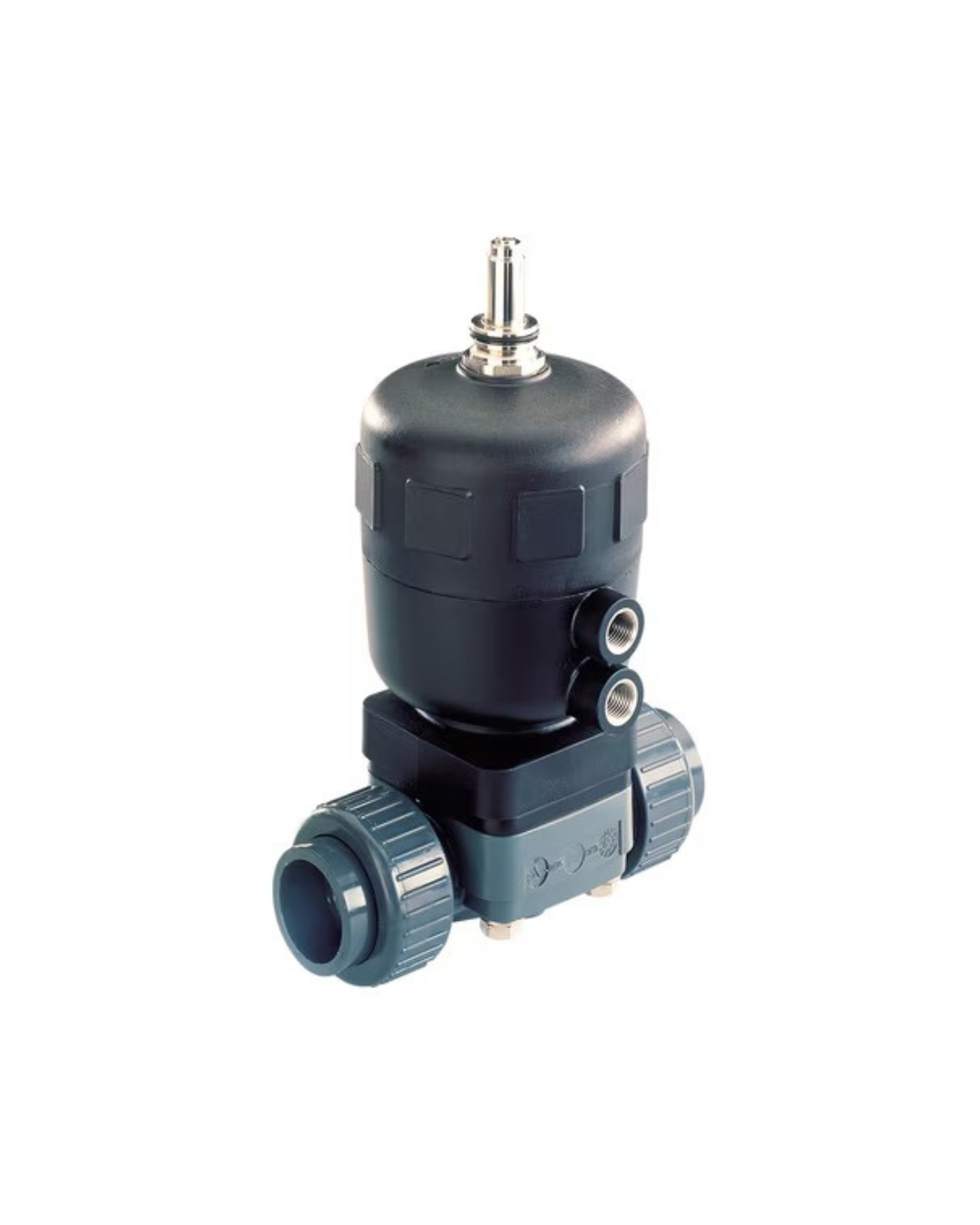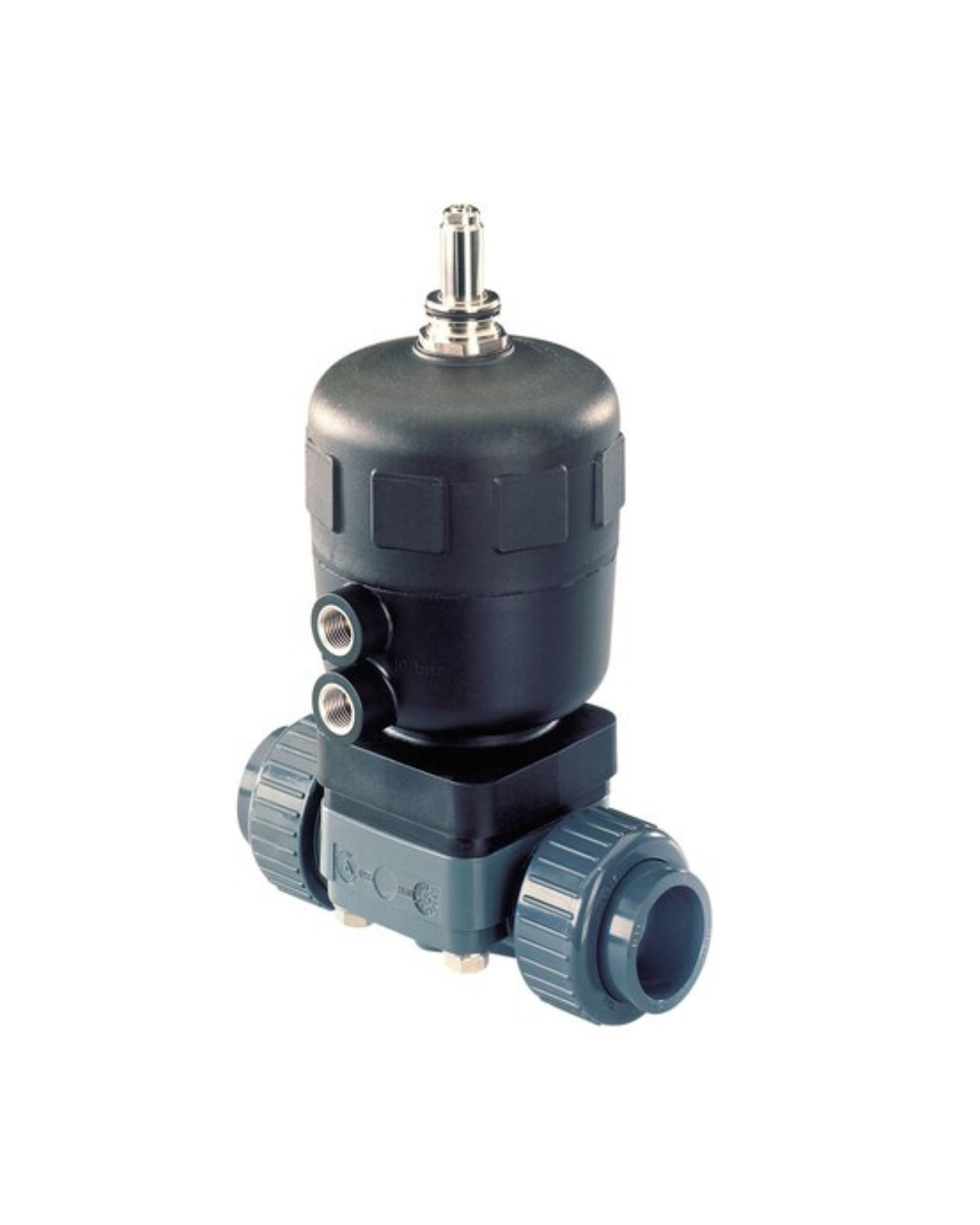 La válvula de membrana con control externo Tipo 2730 se compone de un actuador de émbolo de accionamiento neumático, un regulador integrado, una membrana y un cuerpo de válvula de 2 vías. El actuador de alta calidad con cuerpo de plástico garantiza su uso bajo condiciones ambientales higiénicas o agresivas. El cuerpo de válvula sin espacios muertos y que facilita el flujo permite obtener altos valores de caudal y se utiliza en múltiples ámbitos. El cuerpo de válvula de plástico y la membrana están disponibles en los materiales y versiones más habituales. El actuador tiene un diseño compacto que puede esterilizarse en autoclave (versión en PPS). La integración de unidades de automatización Top Control 8692/8693/8694 y Side Control 8635792/8793 es factible en cualquiera de las etapas de instalación (reequipable). También está disponible una versión del equipo con protección frete a explosiones ATEX/IECEx. El cuerpo está opcionalmente disponible en plástico o acero inoxidable. El actuador está equipado de serie con un indicador de posición óptico integrado, y opcionalmente se le puede instalar una limitación de carrera mín./máx.