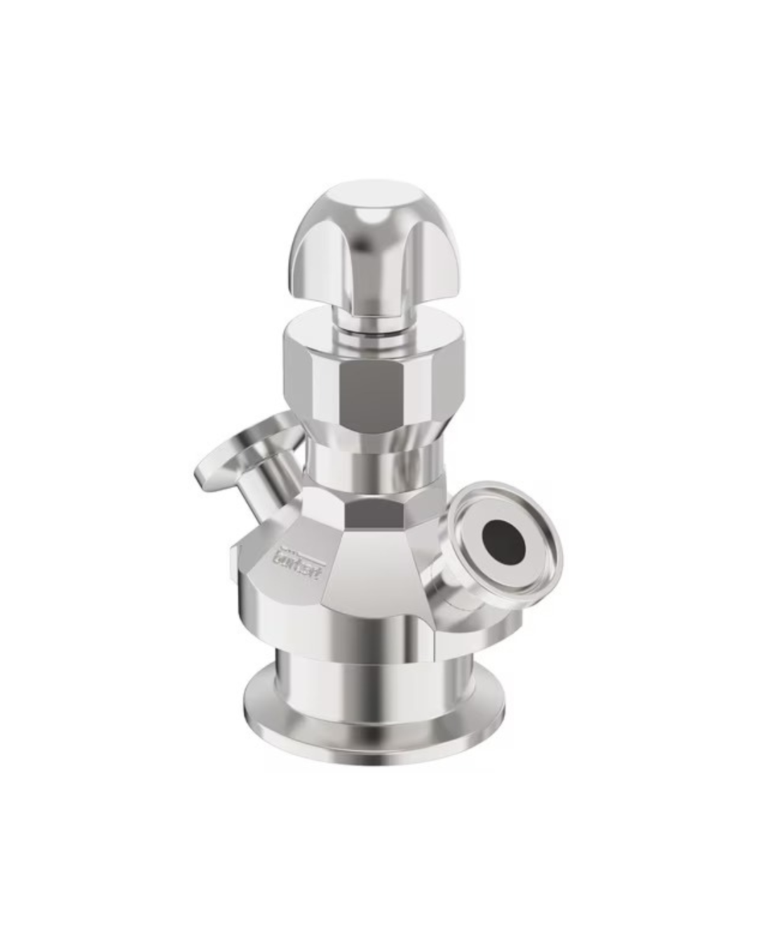 La válvula de muestreo de fuelle tipo 3260, de accionamiento manual, consta de un mecanismo de apertura y cierre rápido accionado manualmente, un fuelle y, según la versión, un cuerpo de válvula multipuerto. El mecanismo de apertura y cierre rápido asegura que la válvula se cierre automáticamente cuando no se acciona manualmente y garantiza su uso en condiciones ambientales higiénicas o agresivas.