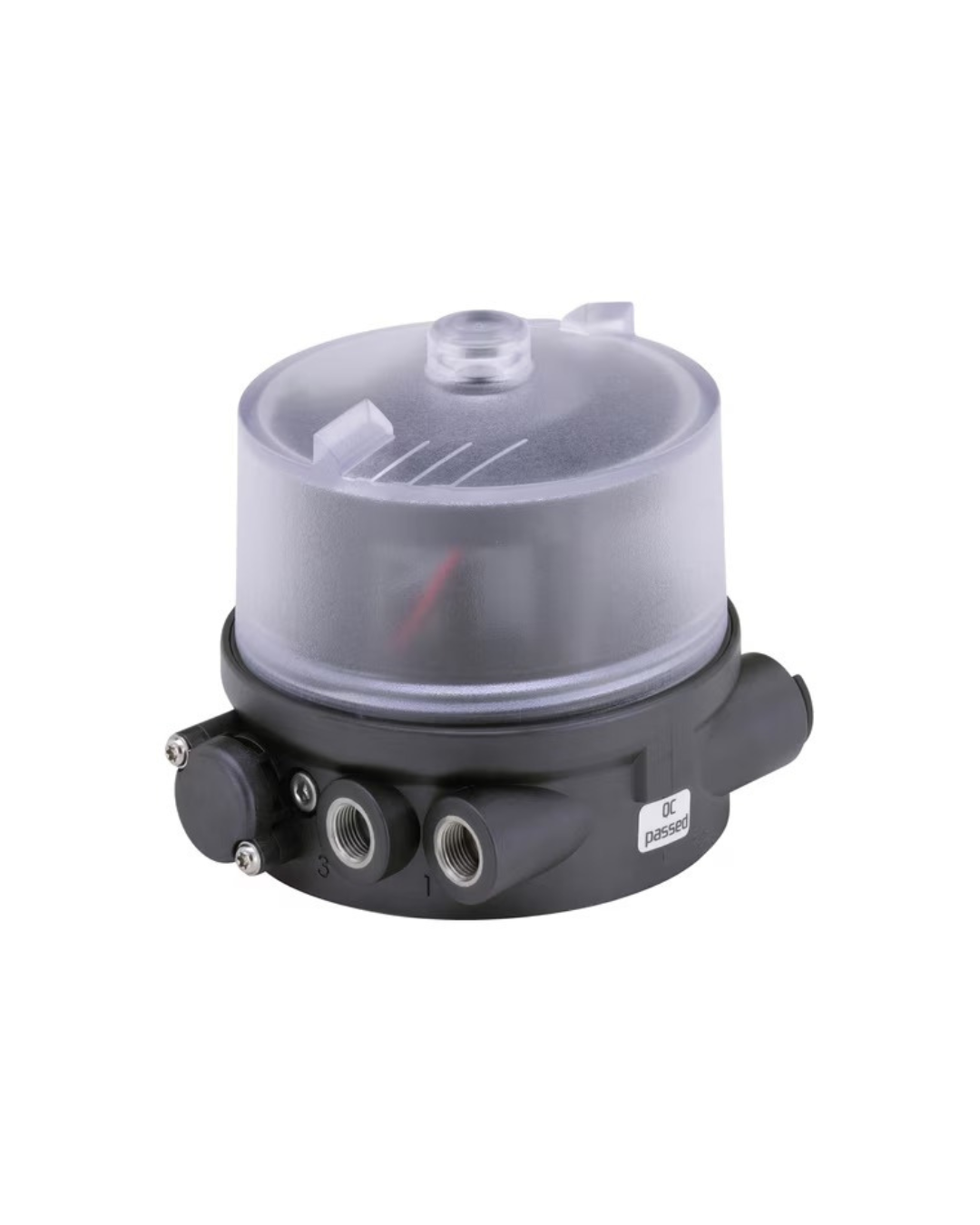 El accionamiento neumático de tipo 8690 está optimizado para el montaje integrado en válvulas de proceso ELEMENT de la serie 21xx. Los interruptores finales mecánicos o inductivos detectan la posición de la válvula. La válvula piloto integrada controla los accionamientos de simple o doble efecto. El diseño de accionamiento y el actuador permiten una conducción de aire de control interna sin mangueras externas. Además de la realimentación de posición eléctrica, se indica el estado del equipo en la propia activación neumática. La carcasa de material químicamente resistente se puede limpiar con facilidad y ofrece protección IP aplicable en la práctica a la tecnología de procesos higiénica en la industria alimentaria, de bebidas y farmacéutica. Especialmente para la limpieza de la instalación, la sobrepresión en el cabezal de control aporta la protección IP de la carcasa. En combinación con accionamientos de Bürkert de la serie ELEMENT, el sistema de ajuste neumático permite una ventilación de cámaras de resortes evitando la suciedad de las cámaras de accionamiento mediante el entorno.